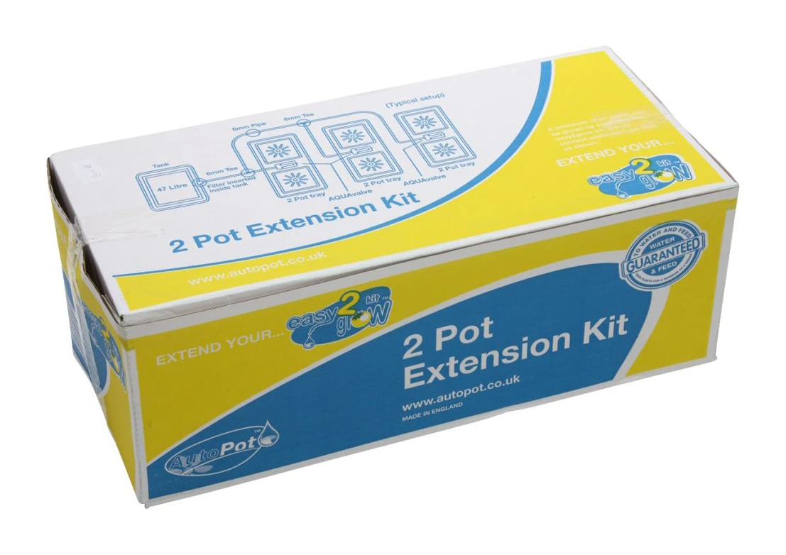 Das 2-Topf-Erweiterungsmodul umfasst: 2 Töpfe, im Boden, integriertem AQUAvalve, mit einem 1,5 m langem Bewässerungsrohr mit einem „T“-förmigen Anschluss. Das angebotene Modul passt in das Easy2Grow Anbausets. Mit dem T-förmige Verbindungsstück wird ermöglicht, weitere Sets mit je zwei Töpfen, durch Schläuche an einem Bewässerungsbehälter anzuschließen. Einem Easy2Grow-Starterset können noch zwei weitere Sets mit Töpfen hinzugefügt werden (insgesamt können 3 Paare, á 2 Töpfen, für insgesamt 6 Pflanzentöpfe, bewässert werden).