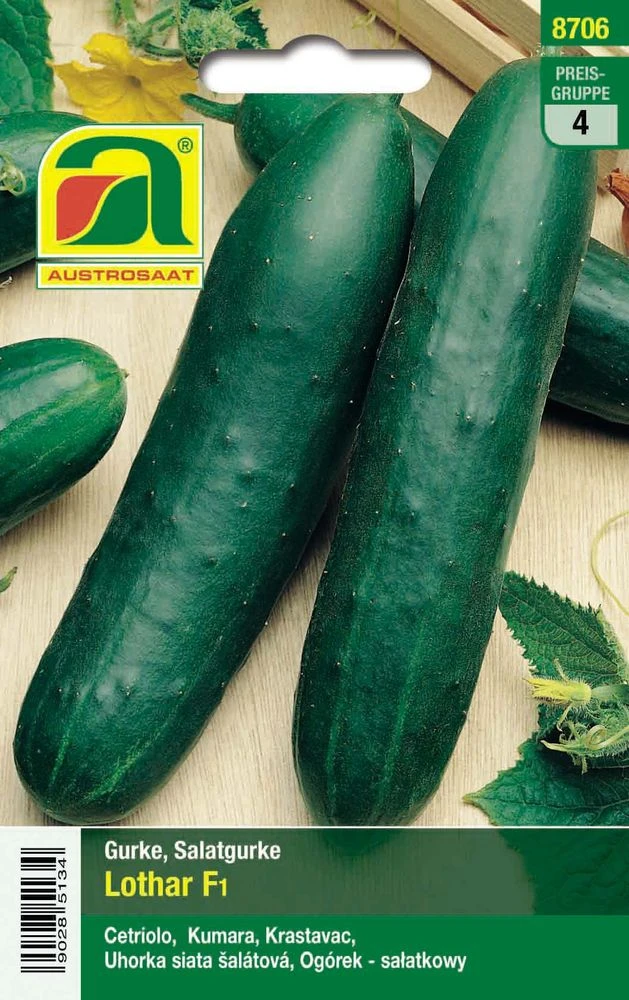 Die Austrosaat Salatgurke Lothar F1 (Cucumis sativus L.) ist eine frühe, ertragreiche Gurke mit 20 -24 cm langen, bitterfreien Früchten. Sie ist tolerant gegen Gurkenmosaikvirus und echten Mehltau und bevorzugt warme, windgeschützte Standorte.