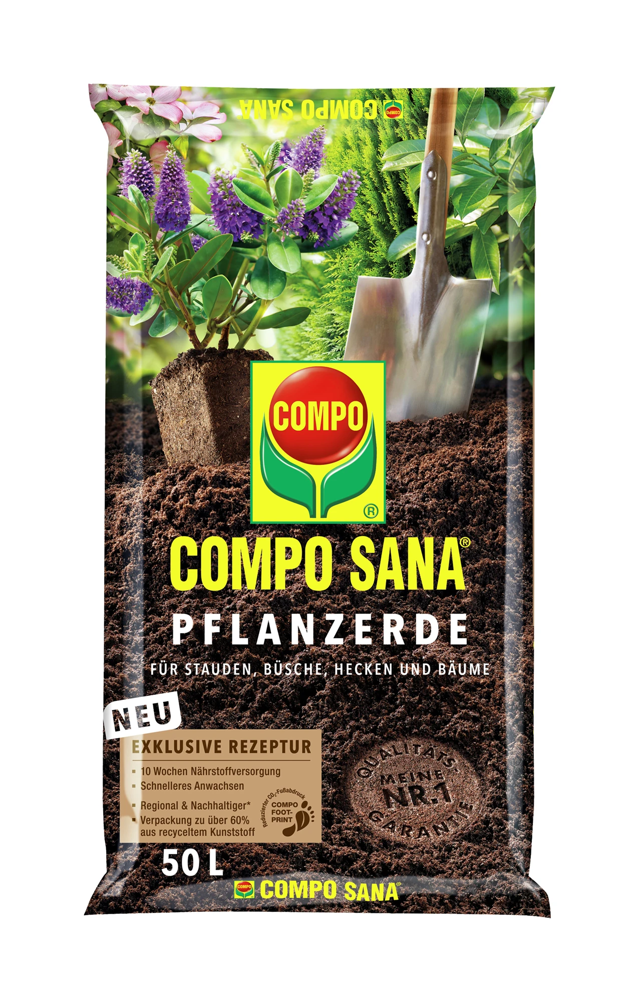 Hochwertige Spezialerde zur Pflanzung von Stauden, Gehölzen und Hecken. Das auf die Bedürfnisse der Pflanzen abgestimmte Dünger-Depot wirkt sofort und gewährleistet eine bis zu 10 Wochen optimale Nährstoffversorgung. Für bestes Wurzelwachstum und eine gesunde Pflanzenentwicklung sorgen COMPO PLUS® Gärtnerhumus und COMPO Wurzelaktivator.