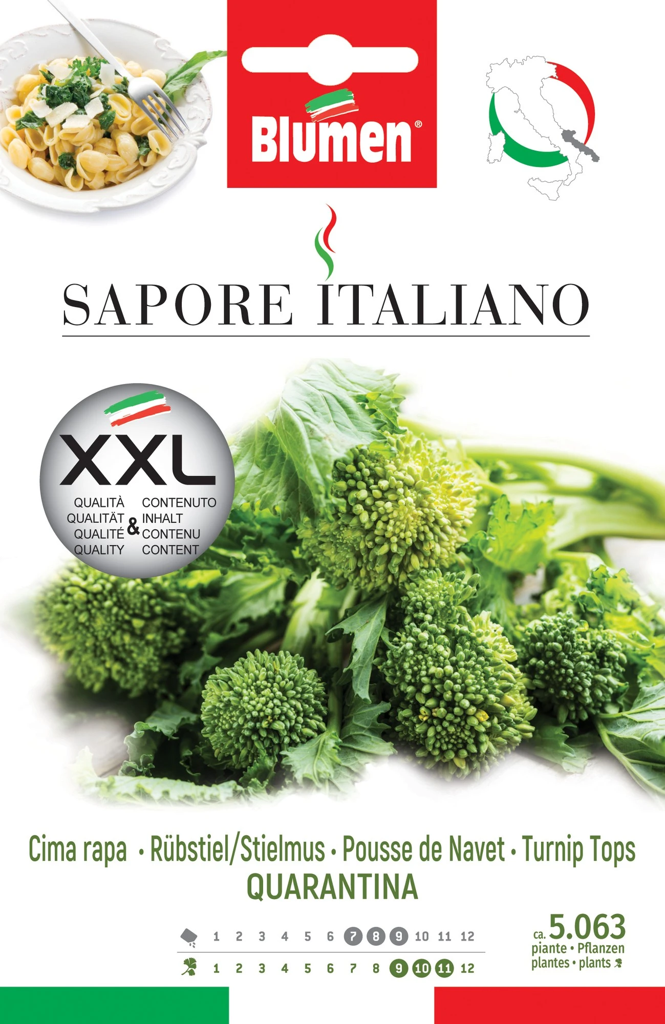 Bildet kleine Blüten mit einem angenehm würzigen Geschmack, reich an Vitamin C und Mineralsalzen. Die Ernte beginnt 40 Tage nach der Saat. Treibt schnell bei geeigneter Stutzung.
